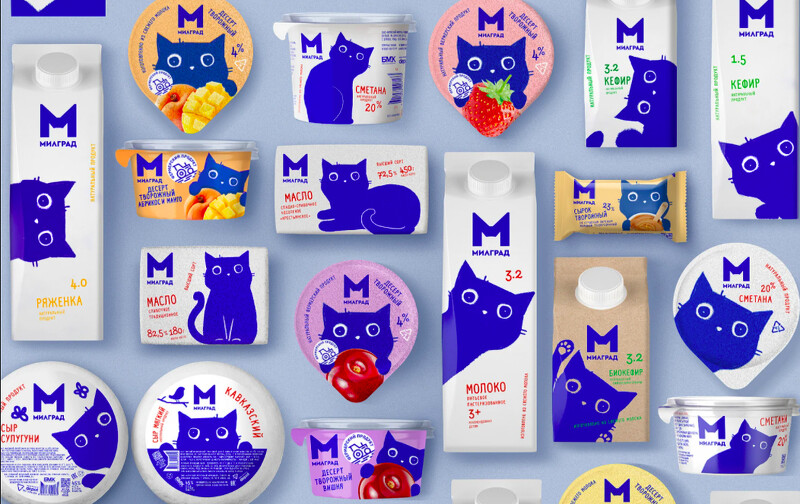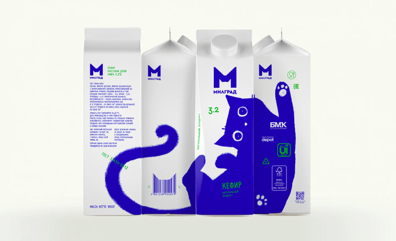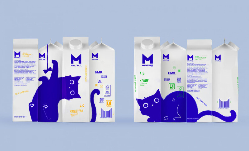 原先俄羅斯品牌Милград (Milgrad)的外包裝中規中矩,後來邀請了Depot.工作室來設計,而藍色貓咪正式設計師以家中的貓咪為設計靈感,因字母「M」與貓咪耳朵相似,於是將兩著結合,最後變成了超可愛的藍貓!