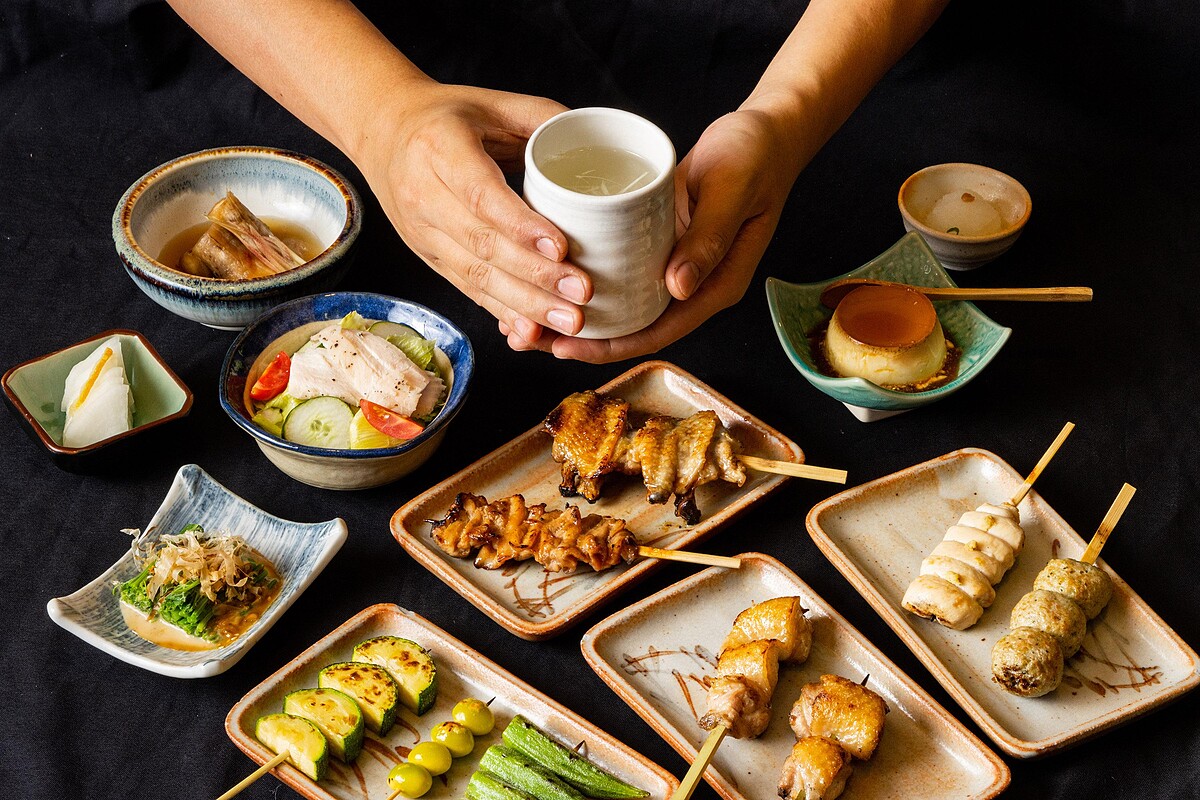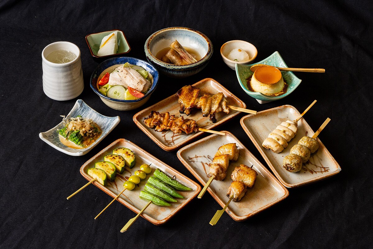 以燒鳥作為主軸,提供經典部位、珍稀部位,以及蔬菜混搭出共9串的燒鳥組合,並承襲日本鳥喜的雞懷石型態,於燒鳥料理之間提供沙拉、漬物、小缽、湯品與甜點 。