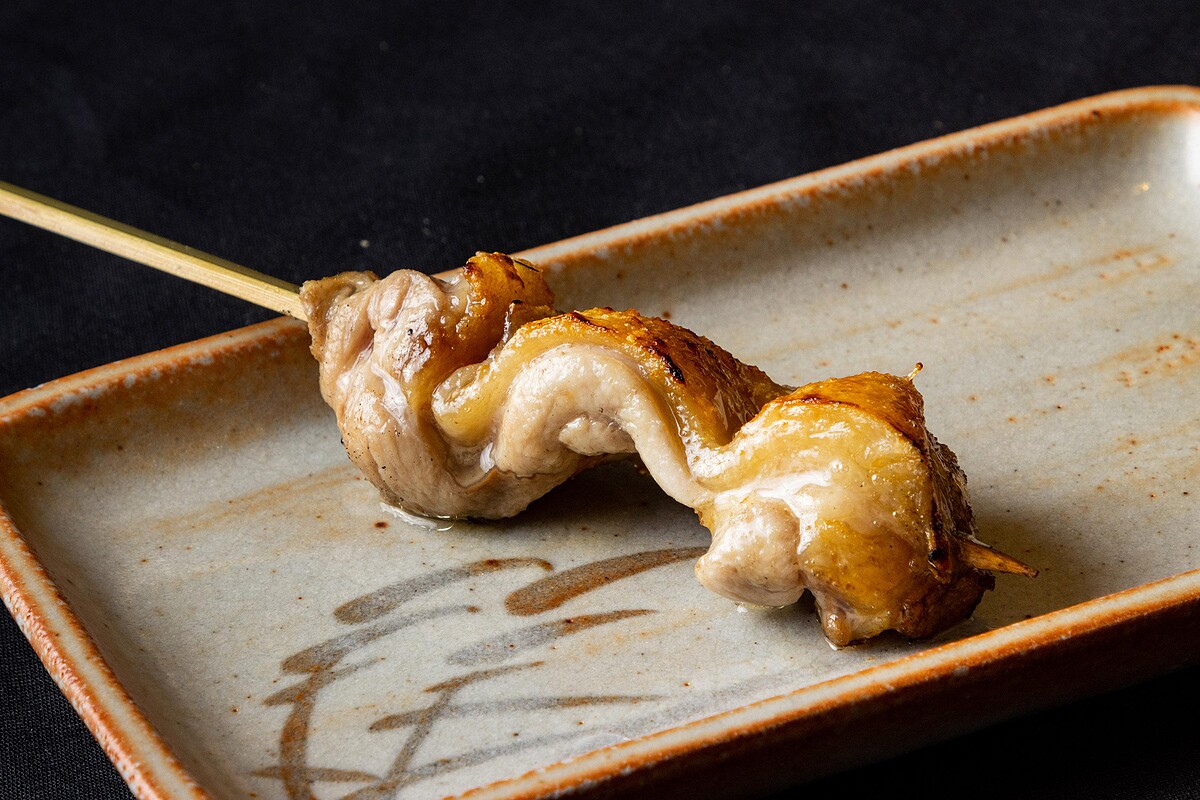 沒有複雜的品項,而是將燒鳥的美味發揮到極限,以細緻的日式分解手法分切至25個部位,其中有許多珍稀部位像是膝蓋肉、雞蠔肉!美味就藏在細節中,根據不同食材的差異使用圓籤、砲籤等5種不同串籤!