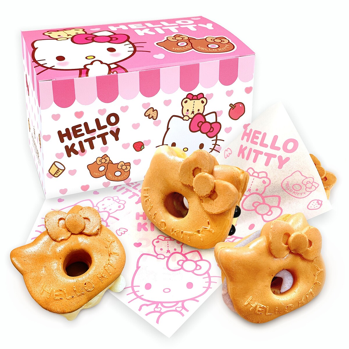 精緻又可愛的Hello Kitty大頭造型,推出3種厚餡新口味,分別是:瀑布起司、爆漿芋泥、卡士達珍珠,全新口感美味再升級,每一種口味都讓人吃得好滿足!