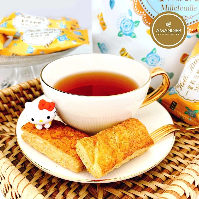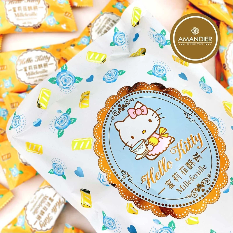 金黃澎鬆酥脆派皮,每一口都清楚感受到層層清脆聲,外層顆粒砂糖與奶油酥皮雙重香脆口感越嚼越溶入嘴裡,一口大小方便好入口!搭配Hello Kitty禮盒、鐵罐、輕便立袋3種包裝,最適合放辦公室當小點心享用!