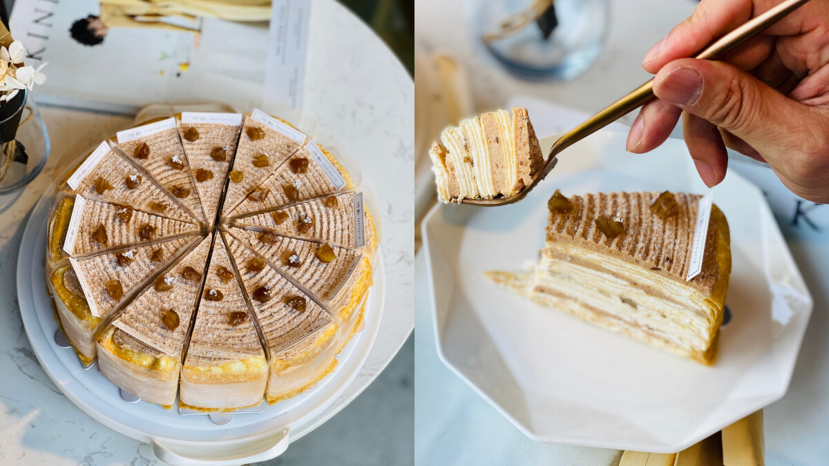 另外一款「栗子千層蛋糕」則是秋季必嚐的幸福之選,將蒙布朗與千層蛋糕巧妙融合,綿密的栗子泥與奶餡在嘴中化開,還有些許的酒香增添層次,上頭點綴糖漬栗子顆粒,滿滿的栗子香氣,栗子愛好者肯定難以抗拒。