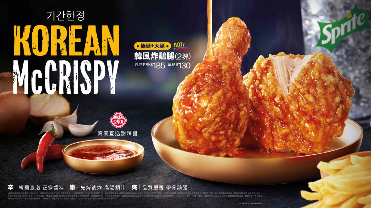 麥當勞「韓風炸鷄腿」9月23日起至10月27日止限定販售。