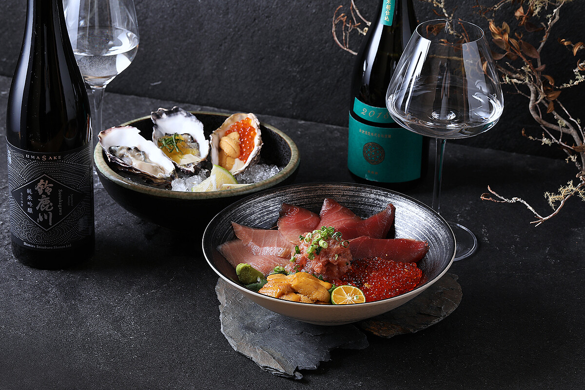 適合喜愛品酒更想了解日本餐酒搭配的精隨,晚宴將一次吃到辻半(TSUJIHAN)最頂級的海鮮珠寶盒特上、日本極上黑鮪丼、鮮活生蠔,並由歐老師親自介紹本次日本酒祭中推薦佐餐的的三款日本酒。感受不同日本酒碰上不同食材海鮮激發出的全新體驗,像是福岡縣山口酒造-庭之鶯 純米大吟釀,本身口感較烈、帶有柑橘及紅蘋果香氣,但搭配現流生魚片佐胡麻醬,酒的口感瞬間變的圓潤順口,更帶出海鮮的鮮甜,更加美味!