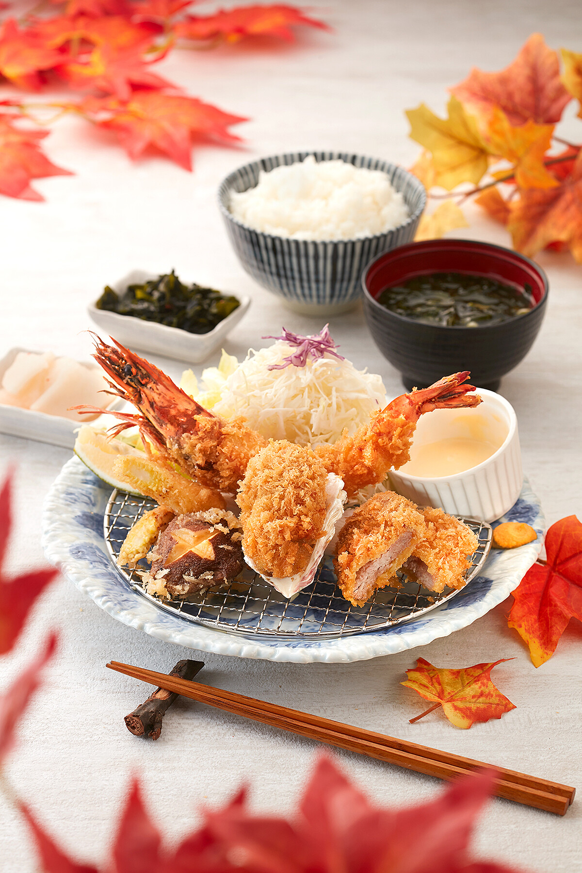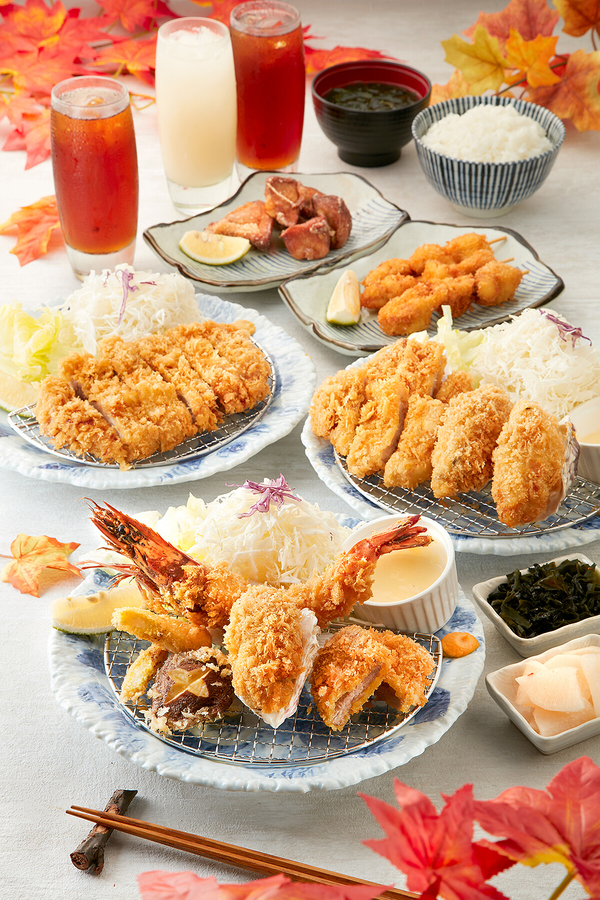 銀座杏子日式豬排推出2款秋季限定軟殼蝦盛合、炸牛排,隨著秋季到來,也是賞楓的時節,更是大啖肥美海鮮的最佳時機!