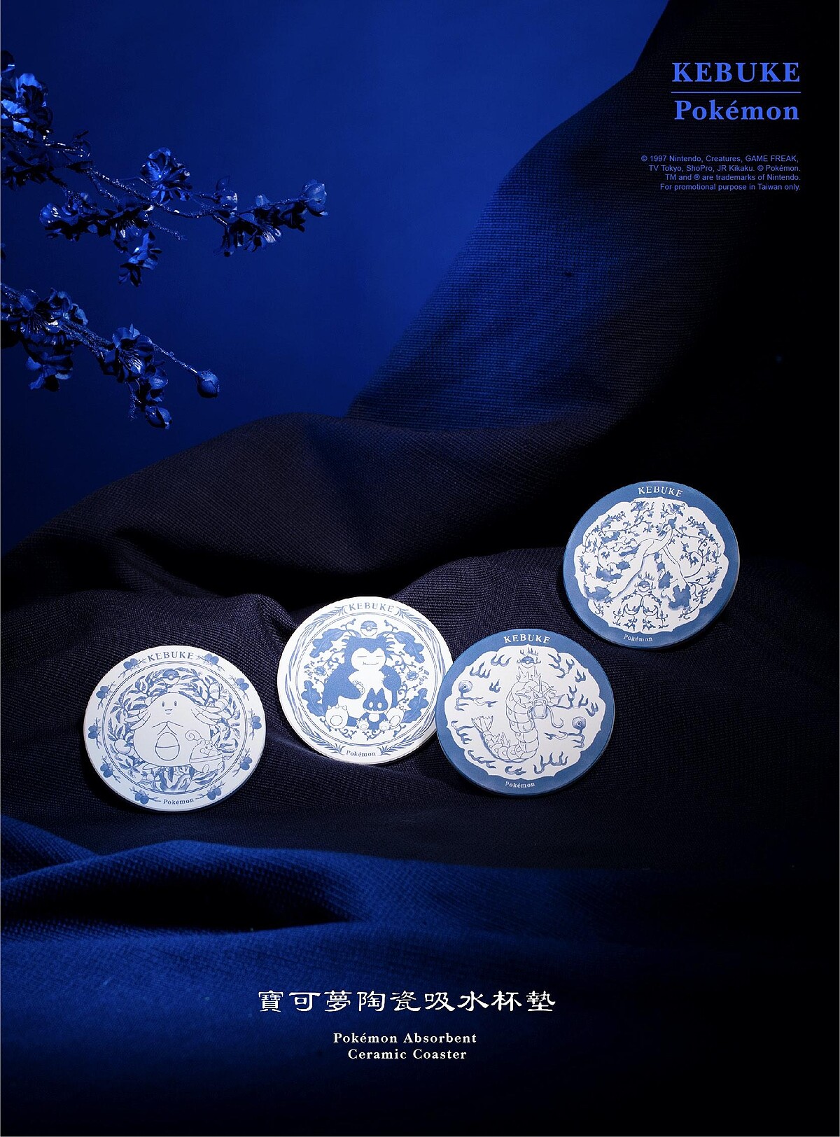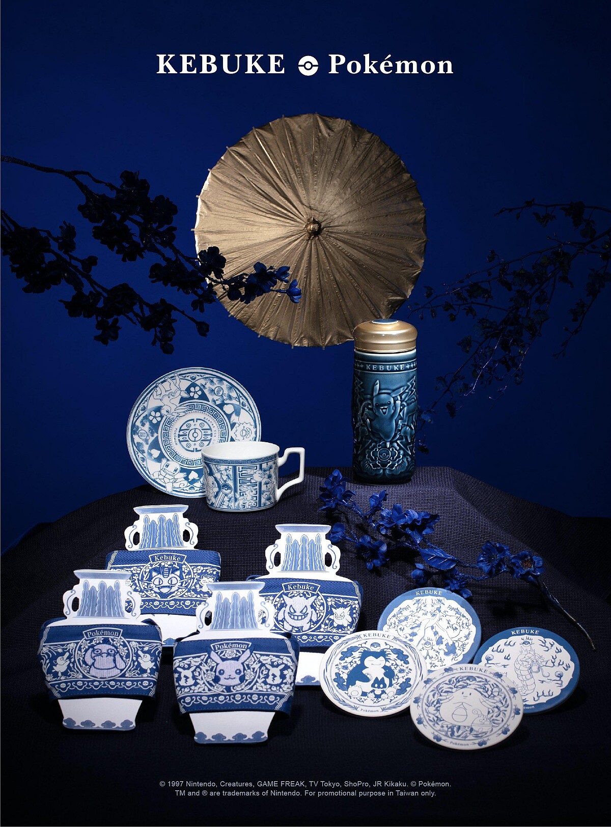 共有4款,以經典角色搭配常見於青花瓷瓶器上的花紋纏枝傳達寓意,皮卡丘藍底芙蓉紋、喵喵藍底梅花紋、耿鬼藍底蘭花紋、可達鴨藍底水仙紋,分別象徵大放異彩、堅韌不拔、空谷幽蘭、清雅脫俗之意。