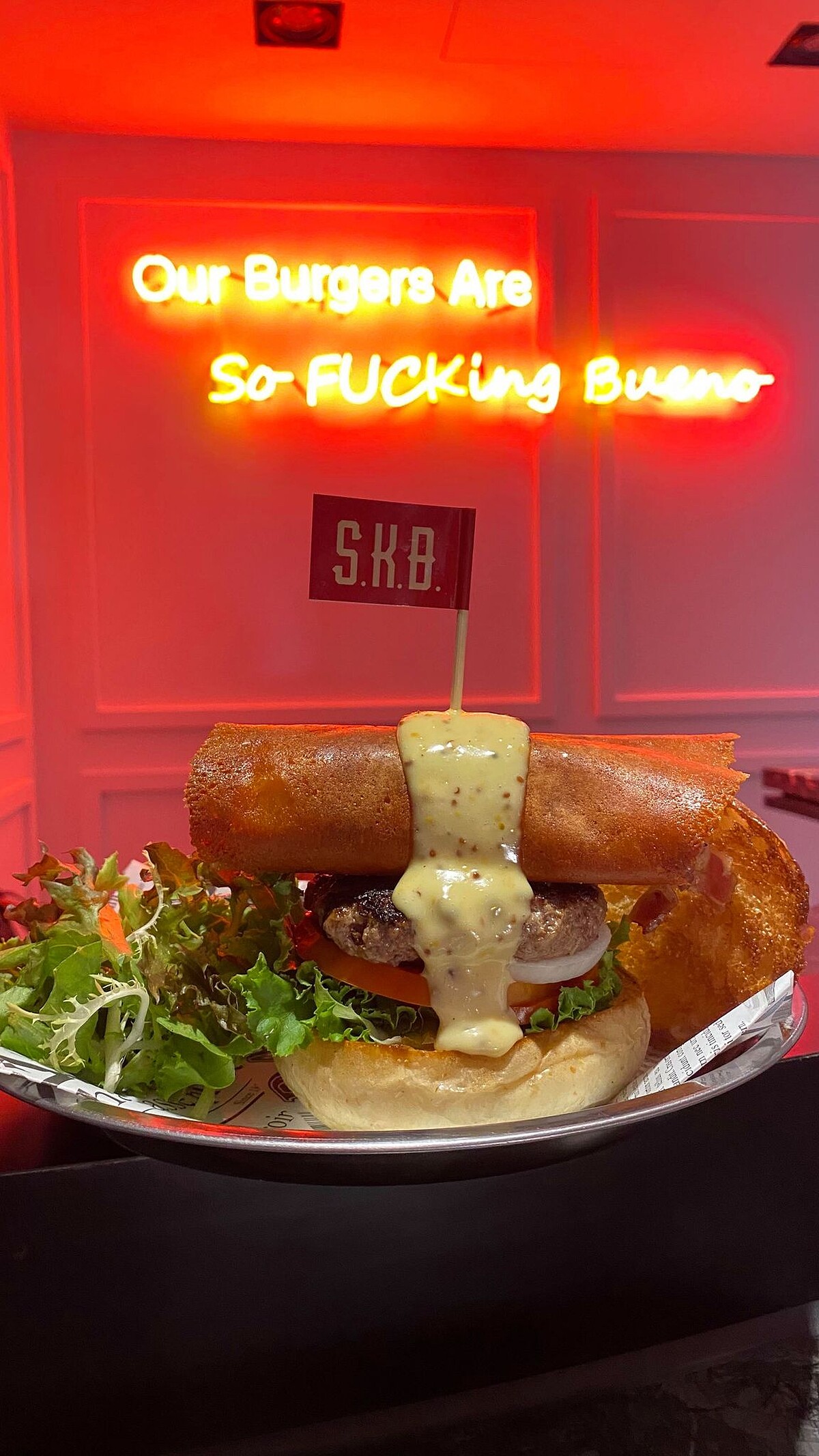 《SKB Burger》新美式漢堡專賣店靠近忠孝復興捷運站,店內裝潢走的是個性派路線,而創辦人Daniel不只曾長期居住美國加州約15年,更曾任職於亞都麗緻飯店巴黎廳,這回他以拿手的分子料理,翻轉傳統美式漢堡,帶來許多驚喜般的新滋味。