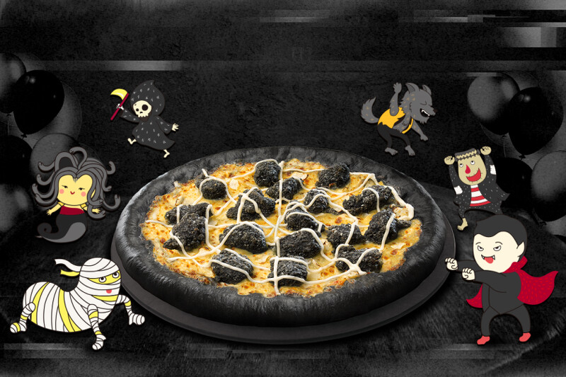 必勝客萬聖節限定「妖獸黑蒜香竹炭雞比薩」即日起至11月 9日限量推出。