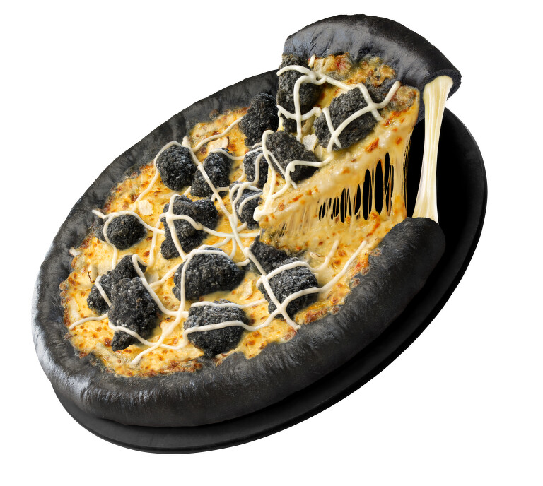 為了迎接萬聖節的到來,必勝客這回祭出黑比薩,端出「蒜香竹炭雞比薩」口味,將高溫酥炸的黑蒜炸雞,搭配炫黑芝心餅皮,光是外型就夠吸睛。