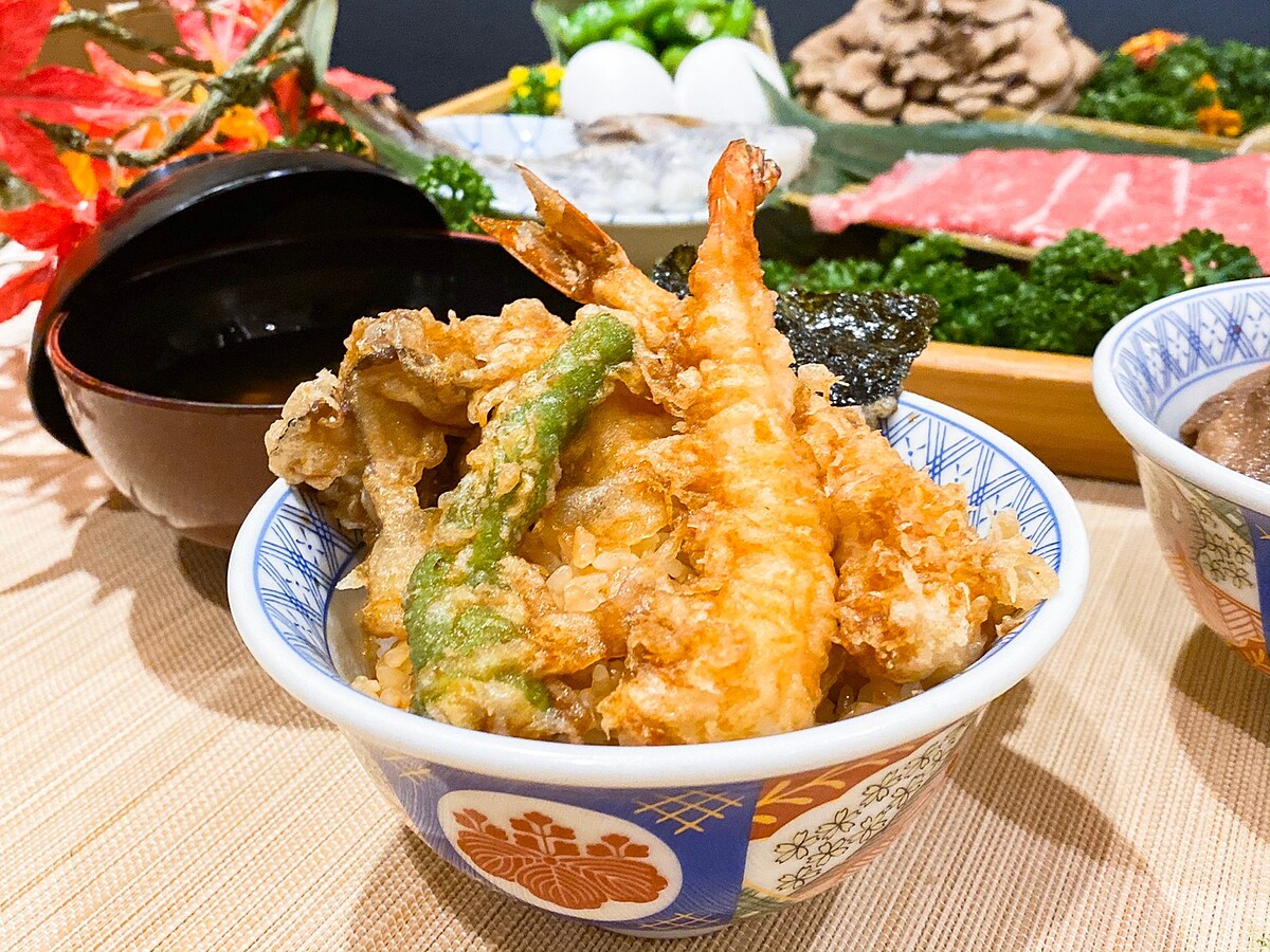 盛滿酥鬆鳳尾蝦、日本舞菇、青龍、海苔、半熟玉子等的美味迷你天丼交錯享受,不管是在風味上還是口感上都是難以言喻的全新感受!