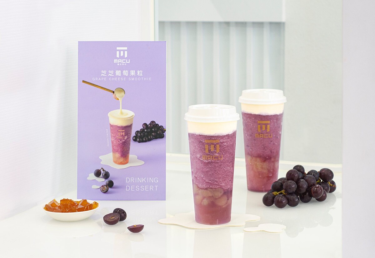 「芝芝葡萄果粒」使用台灣現採的巨峰葡萄作為基底,最上方的奶蓋則使用了紐西蘭奶油乾酪、牛奶製成。