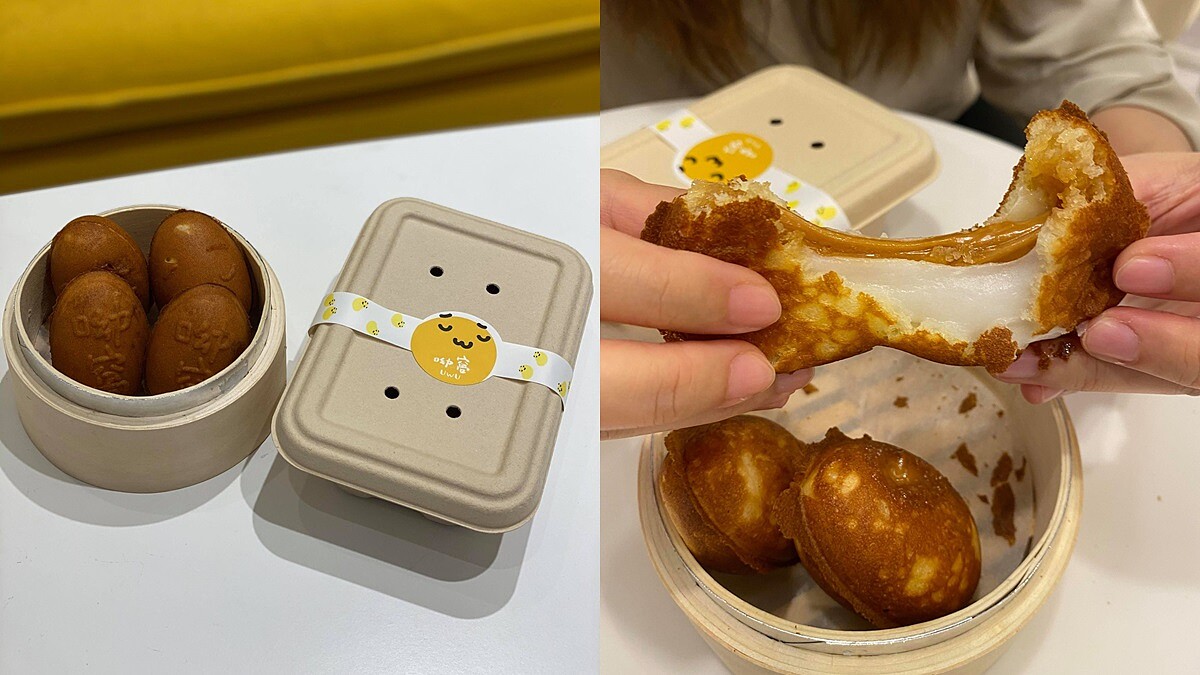 除了飲品部分,《呦窩UwU》還販售現點現烤的窩仔雞蛋糕,固定口味有「流黃小窩仔」以及「起絲小窩仔」,這次也同步推出「焦糖Q窩仔」口味,融合牛奶糖與麻糬,撕開來的爆漿內餡配上鬆軟的蛋糕體,絕對讓你一顆一顆停不下來,偷偷告訴各位,12月將會推出隱藏版口味「芝麻湯圓尬窩仔」,有機會逛到的話絕對要來一份啊!