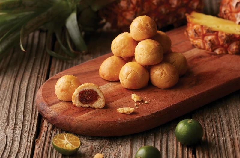 以台灣的必買伴手禮鳳梨酥作為靈感,改量為好入口的大小,熬煮金鑽鳳梨Q餡,再包入金鑽屏東九如金桔餅皮,入口感受柔軟的外皮搭配咬勁內餡,酸甜滋味超開胃!