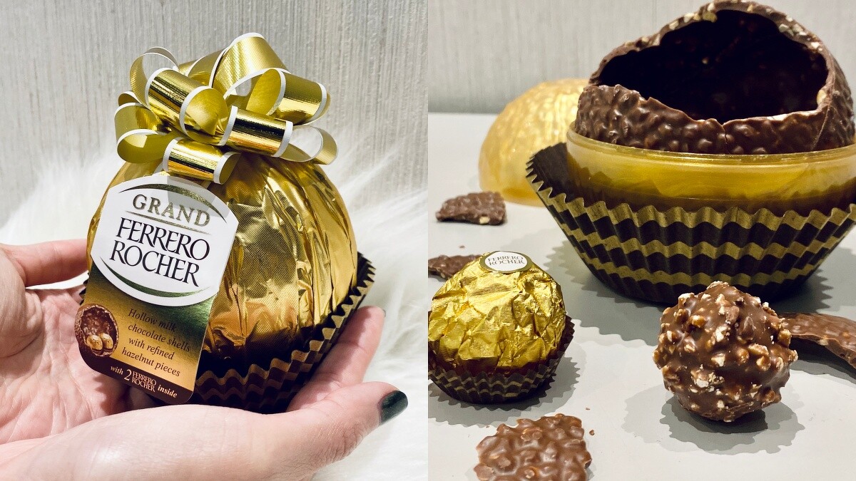 金沙放大了!外型神還原金沙巧克力,這款是冬季限定品,以經典的牛奶巧克力搭配榛果外層,裡面藏有兩顆金莎,聖誕節當交換禮物,或是想送給心儀的人都超討喜。