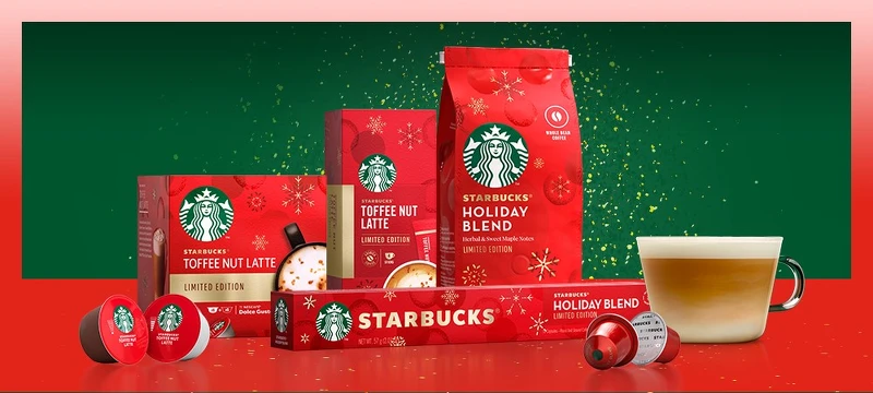 年底迎接聖誕節慶,雀巢與星巴克攜手打造的「Starbucks At Home星巴克節日限定系列」,充滿耶誕氛圍的外包裝,是以星巴克經典紅杯為靈感,完美呈現節日氛圍。