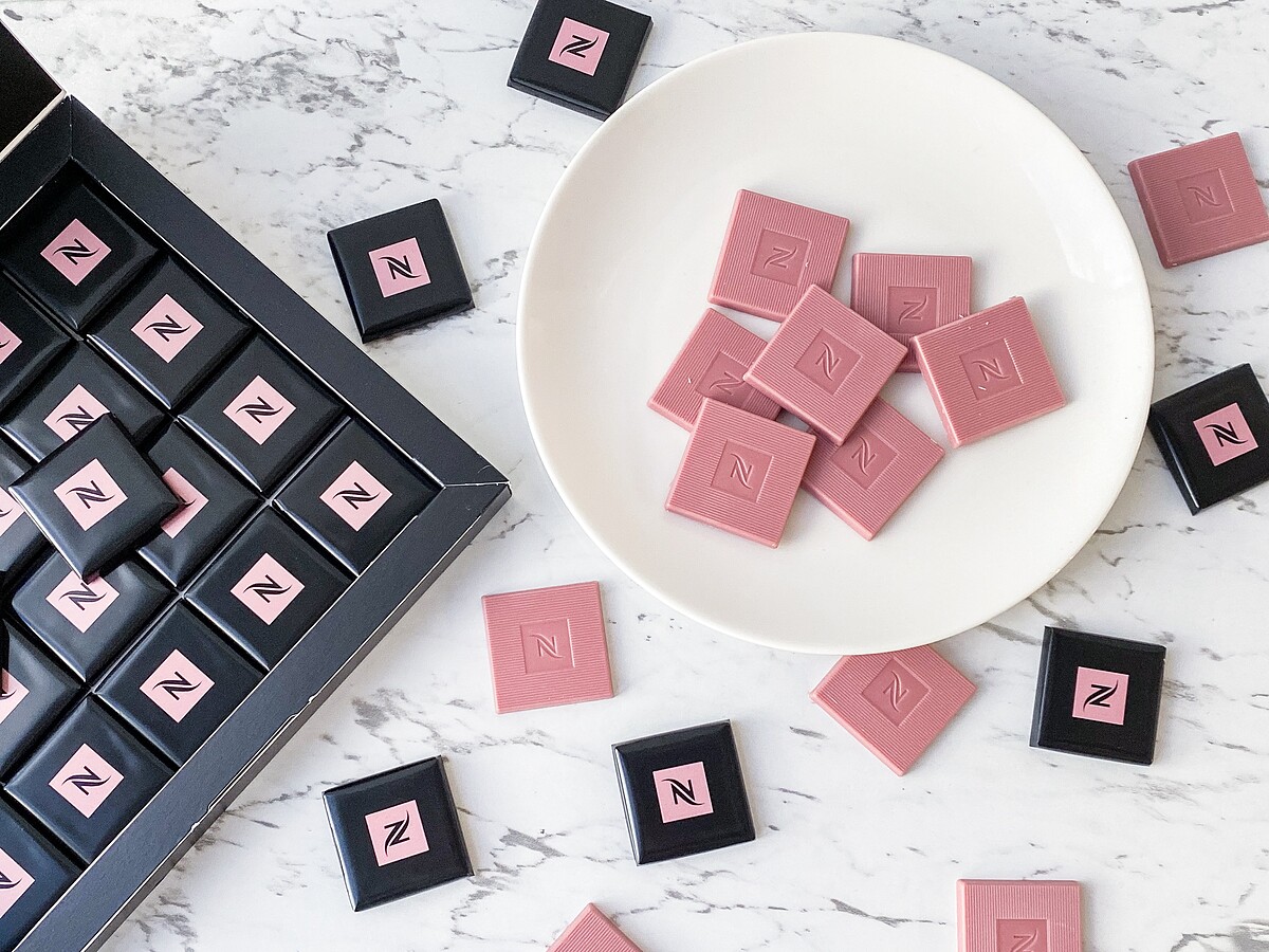 與聖誕倒數月曆同步推出,擁有「世界上第四種巧克力」之稱的璀璨紅寶石巧克力。由紅寶石可可豆製成,透過獨特的技術,將紅寶石可可豆的風味及粉色自然釋放。