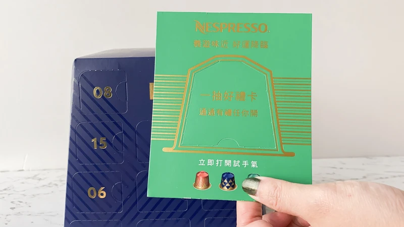 而Nespresso更隨聖誕倒數月曆將同時附贈一抽好禮卡乙張,通通有獎,祝福大家都能有個美好的聖誕佳節!