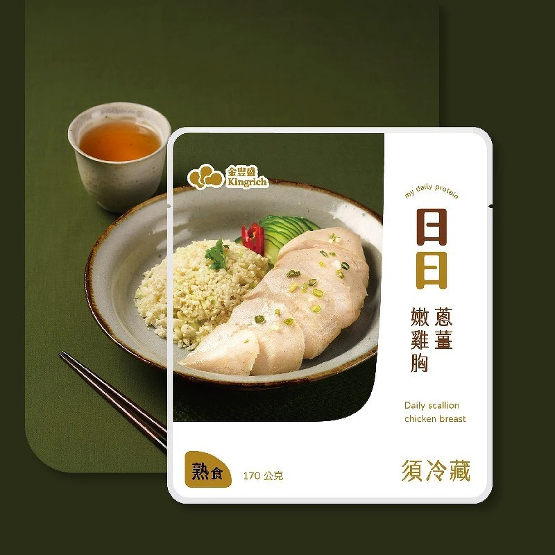 金豐盛推出許多超美味的冷凍生醃、熟食系列系列即食雞胸,像是蔥薑、咖哩、味增口味可以選擇,不只可以即時享用,也可以直接使用在料理之中超便利!