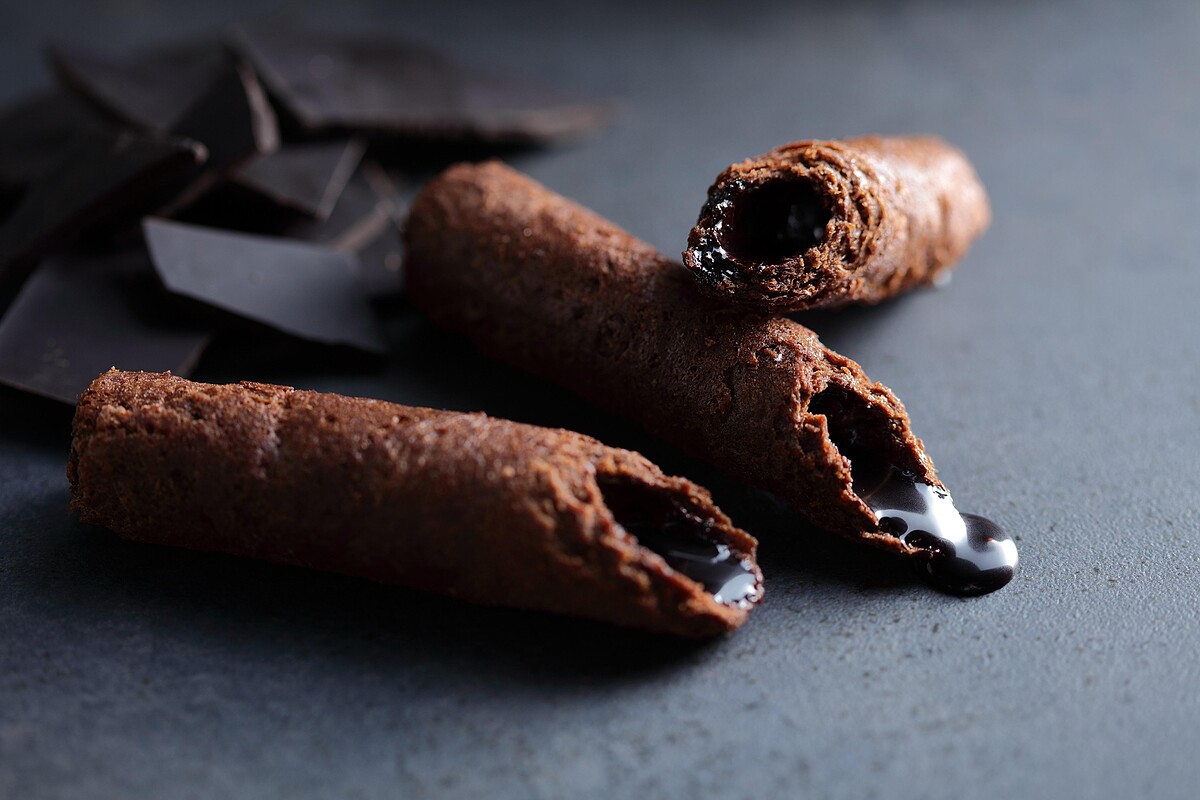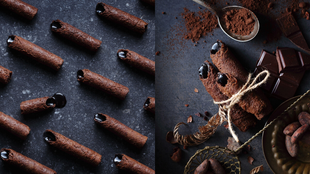為了打造出名副其實的「真」巧克力蛋捲,製作過程皆完全不加一滴水,餅皮酥脆香甜,一口咬下又吃得到黑巧薄餡,苦甜的滋味交織,肯定是巧克力控無法抗拒的夢幻零食。