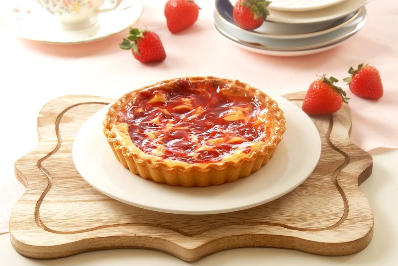 加入草莓果餡和澳洲奶油起司一起烘烤成漂亮的紋路,莓果的酸甜與起司相當合拍,質地紮實滑細,再搭配底部派塔結尾,樸實的派塔滋味。