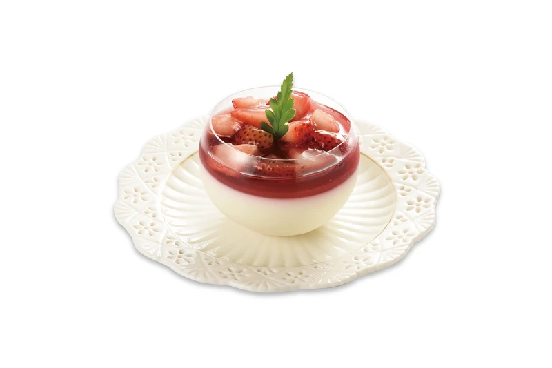 Q彈柔軟的泡芙蛋糕,爽口的奶霜、新鮮草莓凍與滑嫩布丁,濃郁的乳香與草莓果凍酸酸甜甜的甜蜜滋味。
