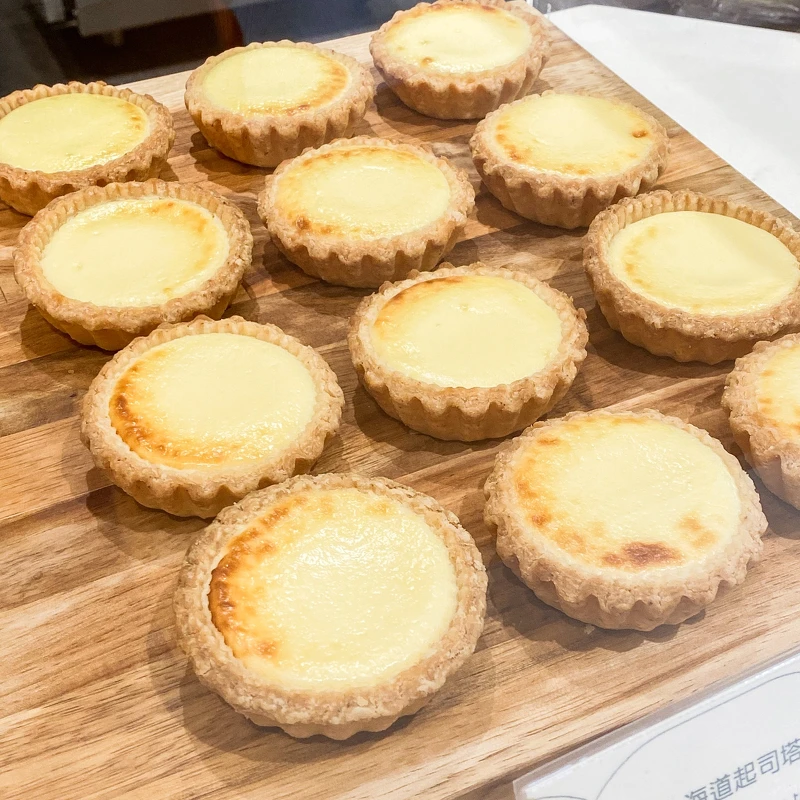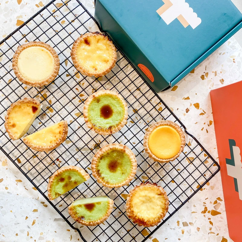 將蛋奶餡注入酥塔皮中,烘烤至表面略呈焦糖化,一口咬下感受濃郁的蛋奶香,與布蕾般的滑順柔嫩,再搭配香酥塔皮,每一口都超療癒。