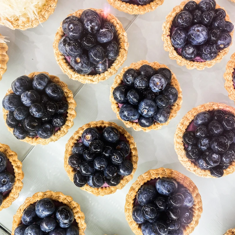 完美組合藍莓黑醋栗果醬、藍莓卡士達、新鮮藍莓三種風貌與層次,充滿酸甜誘人莓果香氣。