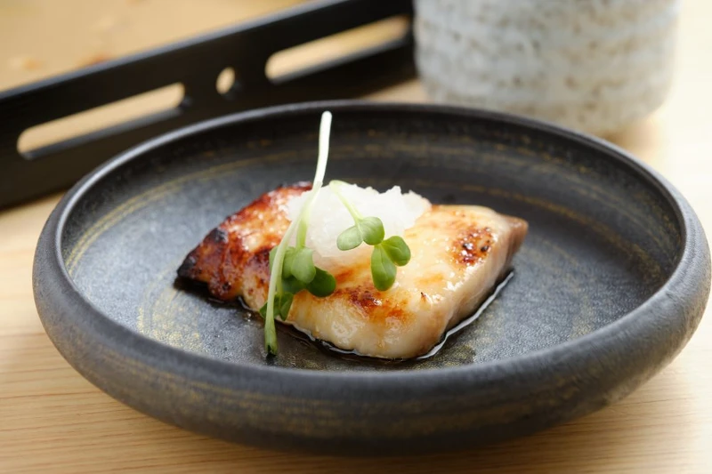 南方澳當令的油魚,品質肥美細嫩。以白味噌醃漬入味後燒烤,搭配白蘿蔔泥品嘗,甜美多汁。另有用柚子汁、醬油浸泡後燒烤的柚庵燒做法,搭配醋味蘿蔔泥品嘗,別有一番風味。