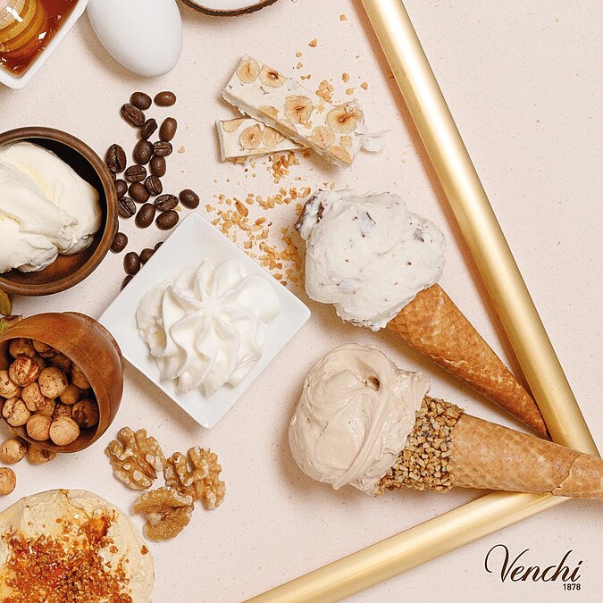 Venchi秉持品牌理念嚴選頂級食材,,打造三大Gelato主題:巧克力,奶油與水果,從柔順香醇,到清新甘甜,宛如一秒來到義大利品嘗道地的義式冰淇淋。