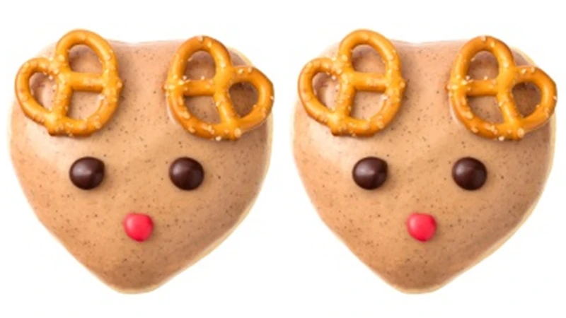 超萌的馴鹿則是奶茶口味,眼睛、鼻子都是美味的巧克力,蝴蝶餅乾化為鹿角,呆萌可愛的模樣,要陪著聖誕老公公一起散播歡樂!
