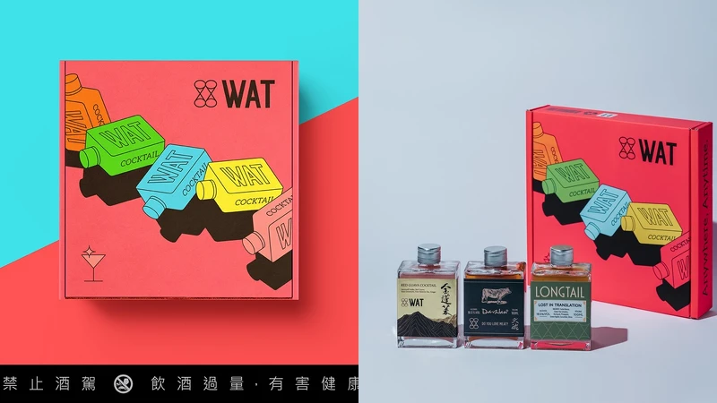 2020年末,《WAT》找來米其林一星餐廳聯名,推出三款限量雞尾酒款禮盒,包括「Longtail x WAT 盡在不言中瓶裝雞尾酒」、「大腕 x WAT 柚薑遇見你瓶裝雞尾酒」以及「金蓬萊 x WAT 紅心芭樂瓶裝雞尾酒」,不只是口味令人驚艷,包裝更是充滿時髦潮感。