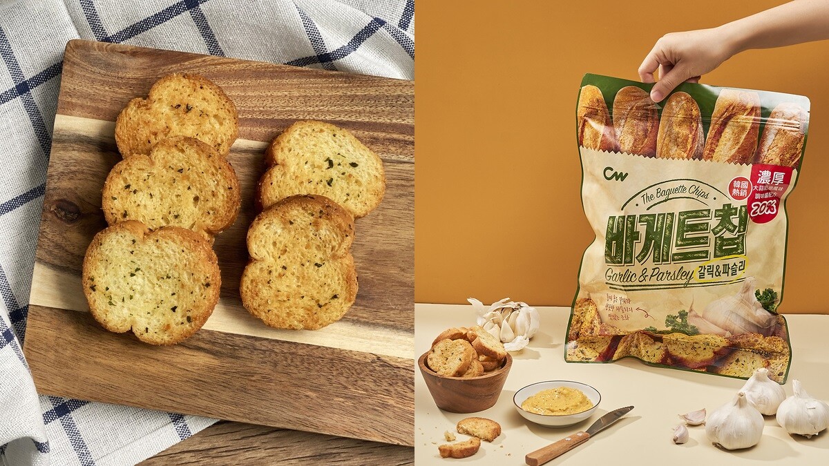 不只在韓國是人氣零食,CW大蒜麵包餅乾在台上市更是引起搶購熱潮,每一片都充滿濃厚香蒜奶油香氣,加上外型又是100%擬真大蒜麵包切片形狀,超適合當作追劇點心享用。