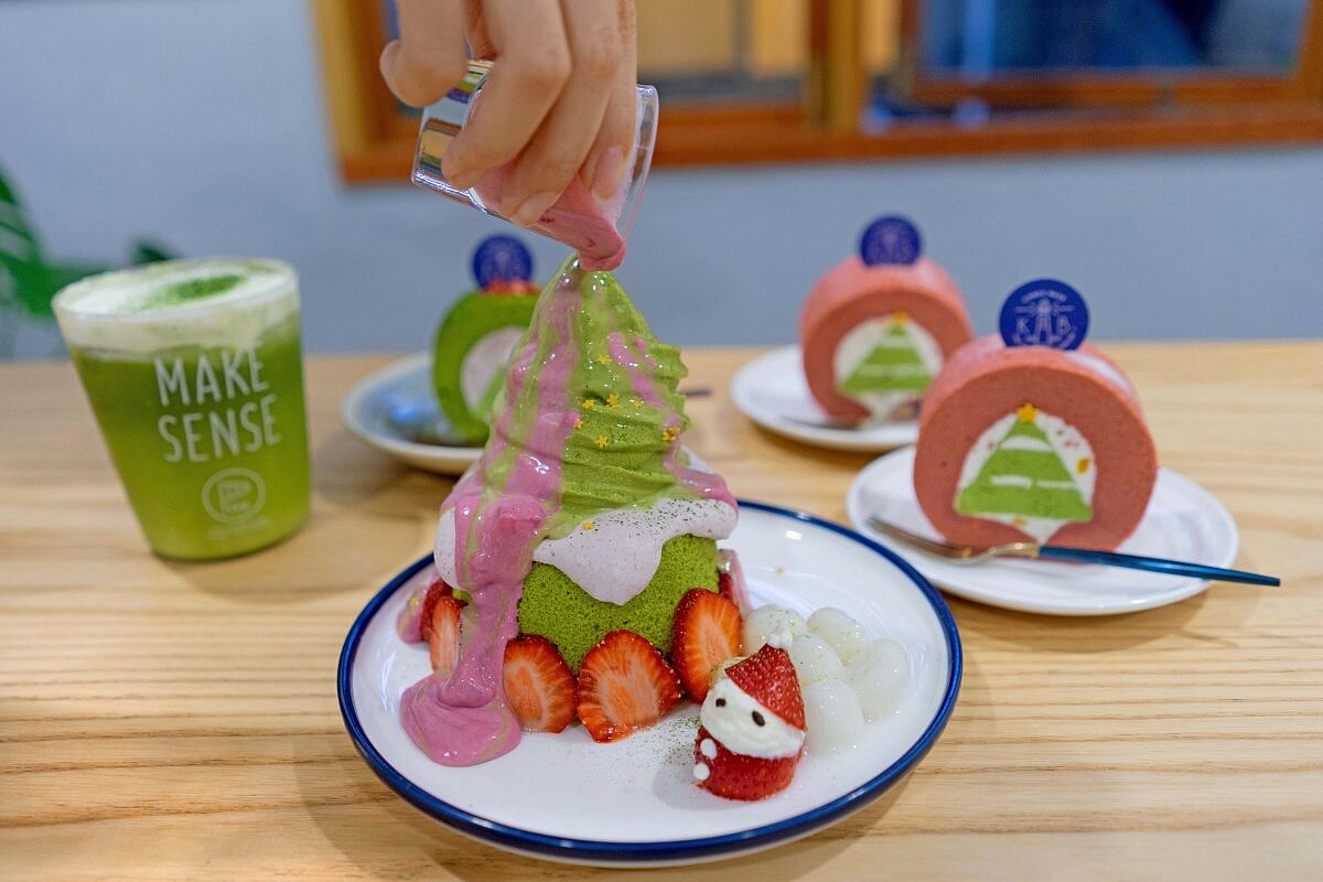將店內超人氣「抹茶冰山」升級為季節限定的抹茶草莓冰山,外觀彷彿像一棵聖誕樹造型實在太可愛了!將原先的抹茶淋醬改版為草莓淋醬,草妹奶醬的酸甜跟濃郁的抹茶霜淇淋完美結合,再搭配鬆軟的抹茶戚風蛋糕一同享用就是最完美的下午茶!