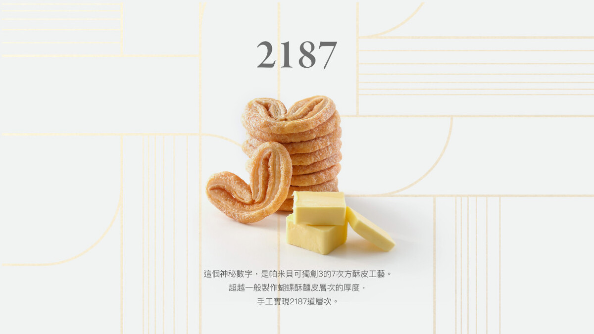 喜歡蝴蝶酥的人,就愛它一咬下去那酥脆的口感,帕米貝可蝴蝶酥更是堅持手工,打造超越千層派的極限,獨創台灣第一「3的7次方」酥皮工藝,手工實現2187道層次,絕對是你必試一波的下午茶點心。