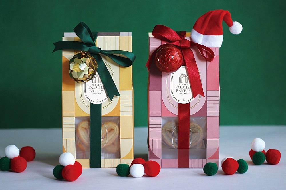 帕米貝可蝴蝶酥共販售4種口味,包括原味、芝麻、伯爵茶以及巧克力,今年聖誕節則推出聖誕限定包裝,分別有粉紅與鮮黃款,紅綠緞帶更增添節慶氣氛,當作送禮實在超適合。