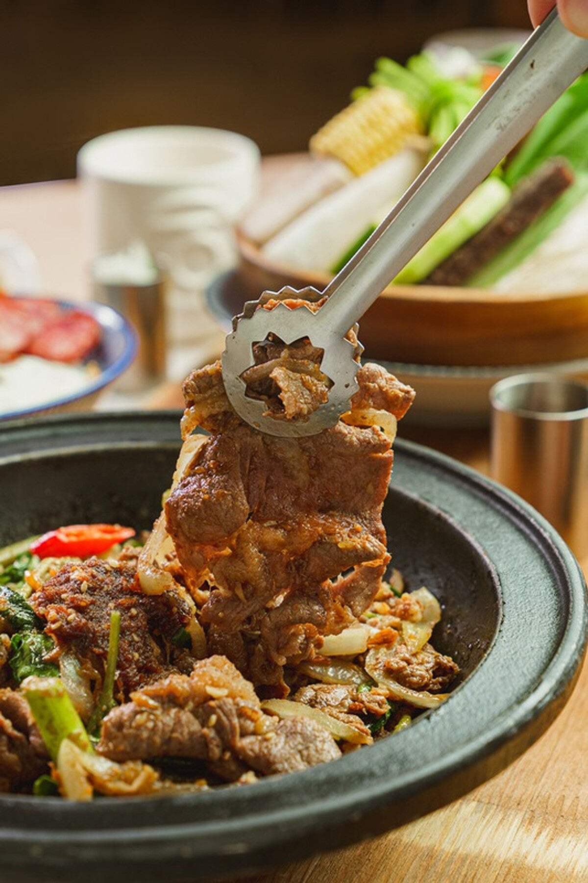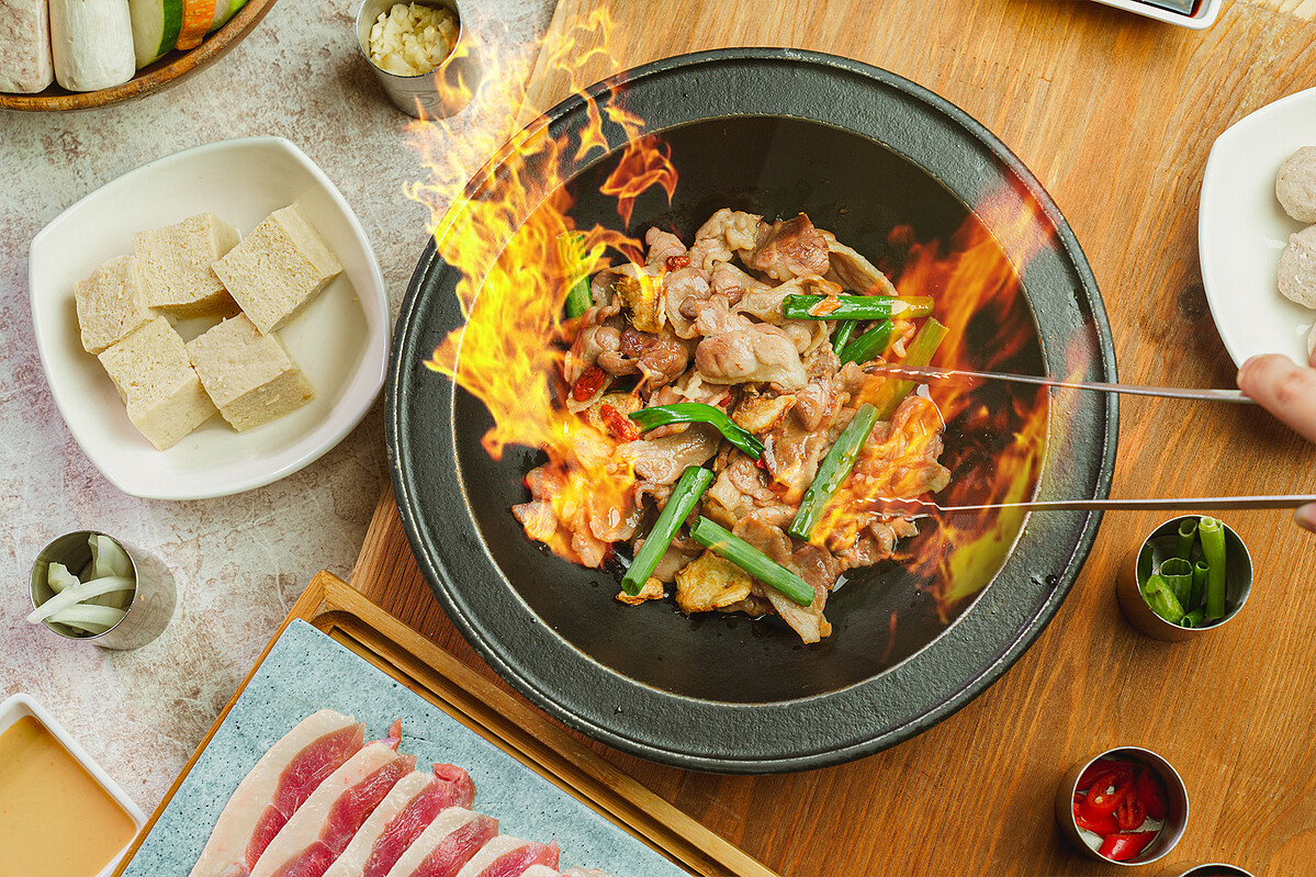 再加入蔥、蒜提升鴨肉鮮甜感,以大火快炒爆出陣陣誘人香氣,最後在淋上獨家秘製的石頭湯底,經過爆香後的湯頭濃郁順口,讓人口水直流。