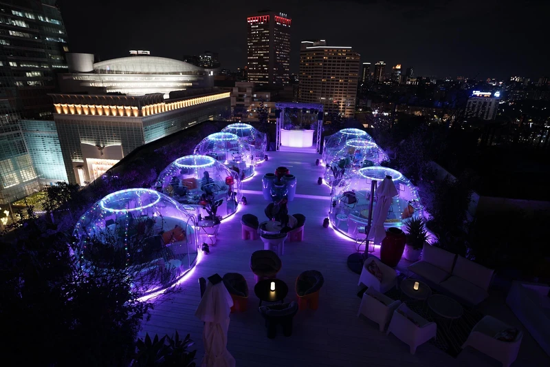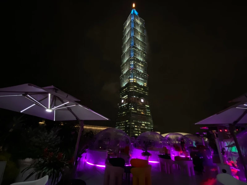 擁有戶外及室內的用餐空間,戶外泡泡屋空間宛如度假勝地,一旁就是台灣著名的地標Taipei101,白天能遠眺台北都市景致,夜晚則能欣賞絢爛霓虹的絕美夜景,無論什麼時候前來都別有一番風情!