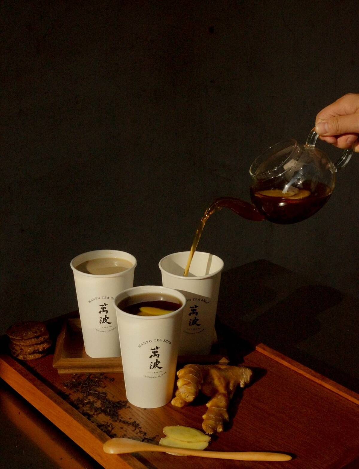 《萬波》2020年末的「薑汁系列」熱飲共有3款,包括「黑糖薑茶」、「薑汁紅茶」以及「薑汁撞奶」,嚴選老薑手工熬煮成薑汁,再加入經典飲品當中,打造出微微辛辣,又能暖喉暖胃的幸福滋味。