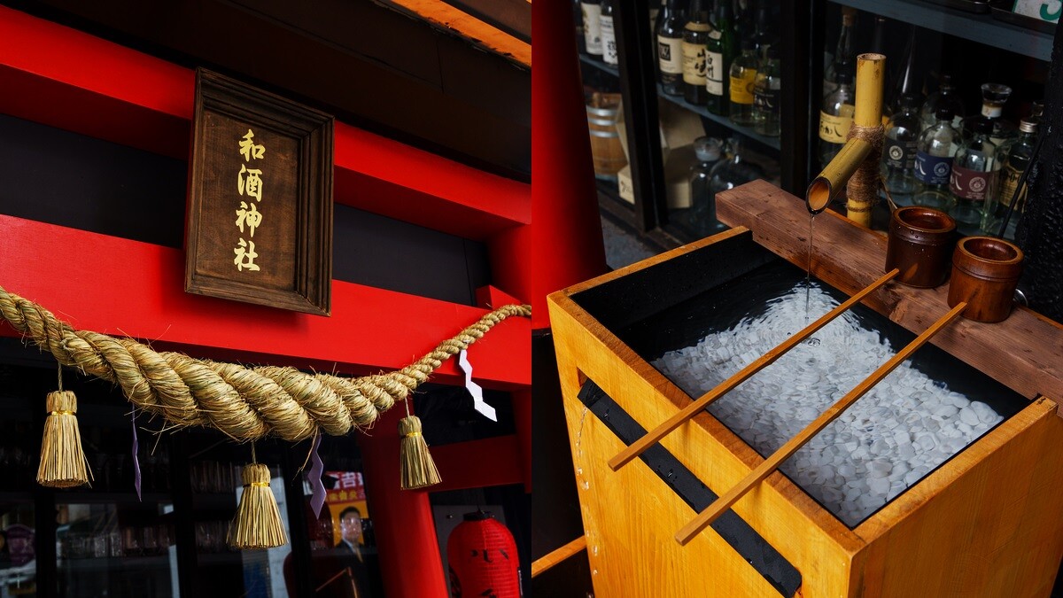 這次還找來5大王牌調酒師傅客座,一同品嚐帶有日本文化的日式調酒吧!不僅有美食與美酒,這次更直接吧日本神社複製到酒吧外,外觀變成了大紅色的鳥居造型,並裝設奉納箱,還附有神社必備的手水舍,豎立的紅傘與長椅,宛如一秒到了日本!