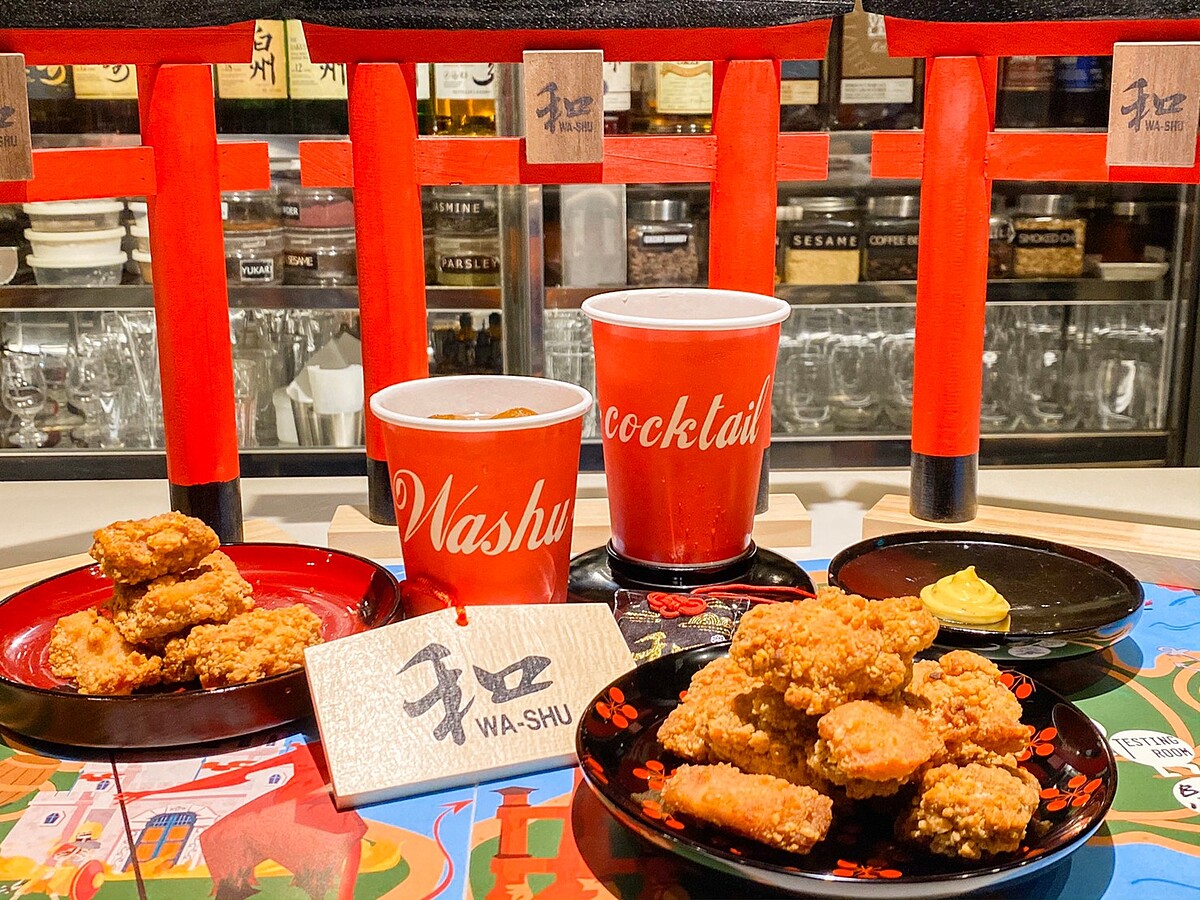 WA-SHU和酒隱身在台北東區人氣的日式酒吧,這次攜手繼光香香雞推出限定口味炸雞、可樂酒組合!和酒擅長在調酒中融入不同的食材打造全新風味的調酒,像是加入毛豆、九層塔、馬告,甚至還有義大利麵口味的調酒,讓人非常驚艷!還有調酒系微醺蛋糕,讓大家在疫情不能出國之餘,也能感受一下日本人傳統在聖誕節、跨年吃炸雞的習俗!