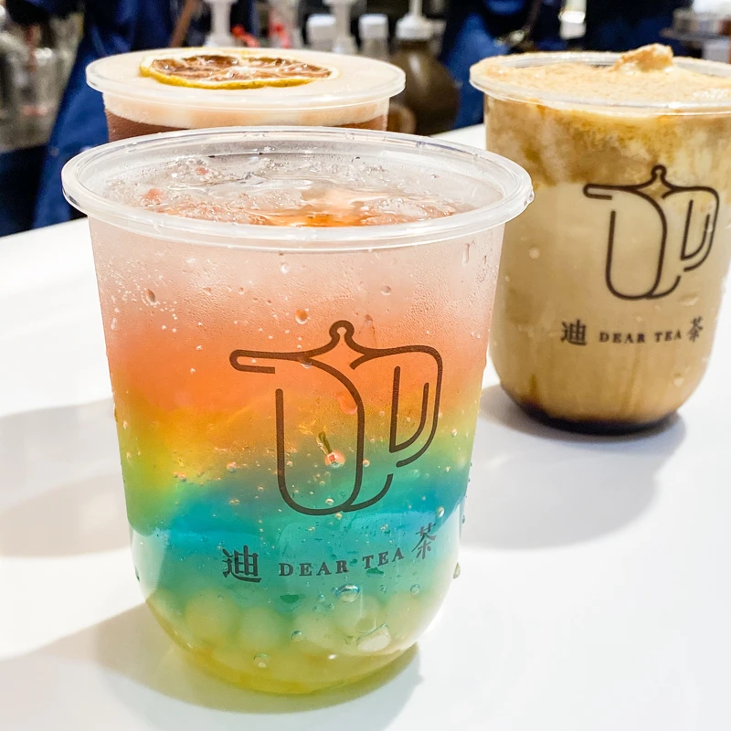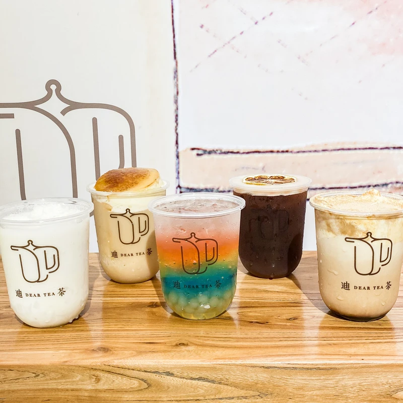 迪茶擅長將古早味元素像是在地傳統銀耳、果乾、麵茶、青草茶、苦茶、南北乾貨,及枸杞、桂圓、紅棗、桂花⋯中藥材等,入茶蹦出全新風味,甚至還有杏仁茶手搖飲品等待大家一同品嚐!除了飲品外也有濃郁奶香兼具醇厚茶香的霜淇淋,無論是奶茶控,或是喜愛清爽的茶系飲品、甚至是浮誇無極限的彩虹漸層飲品在這裡通通喝得到!