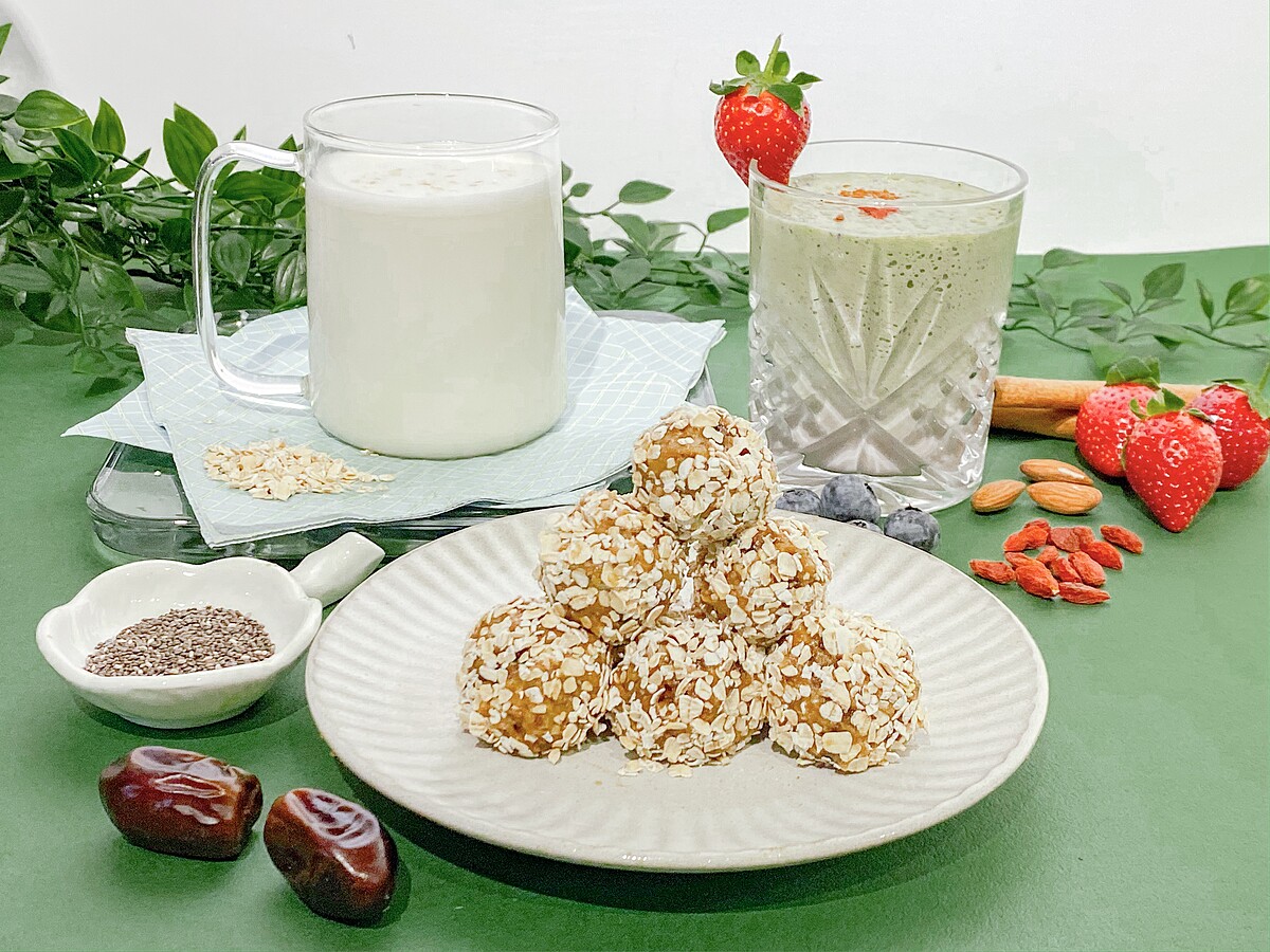 燕麥奶是當紅的牛奶替代品,造福素食者和乳糖不耐症患者,其低熱量、高膳食纖維的特性更讓健身、減肥人士青睞。建議可與南瓜一起製成南瓜拿鐵取代早餐,一杯飲品不僅擁有濃郁的辛香料與醇厚南瓜香氣與飽足感,每一口都讓人好滿足!