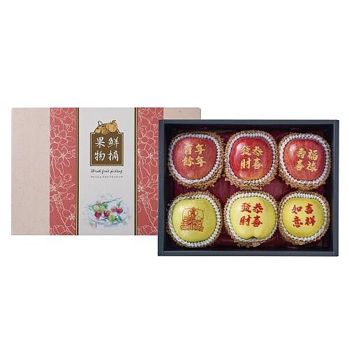 獨家的繪文字技術,搭配來自青森的富士蘋果與金星蘋果,當作過年祝賀禮盒十分喜氣。