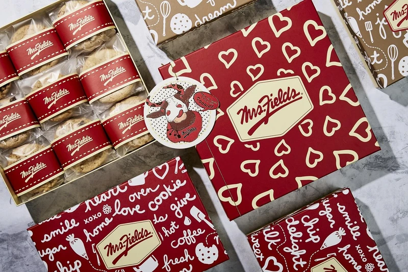 其中還有創辦人的最愛「燕麥葡萄乾核桃餅乾」或是老少閒宜的「牛奶巧克力粒餅乾」人氣餅乾,而全系列禮盒也將附上「Mrs. Fields喜牛」小卡,讓大家將祝福化為文字送給親朋好友吧!