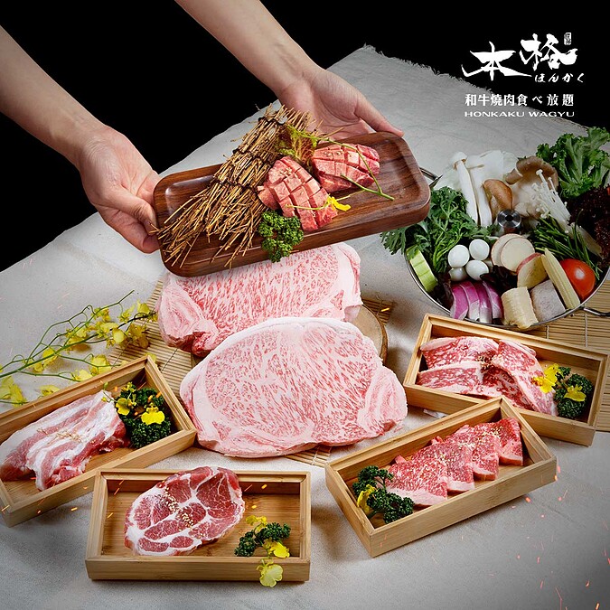 主打M9+澳洲和牛霜降及和牛雪花吃到飽外,每日限量的特選橫膈膜及厚切牛舌,更是有著滿滿的肉汁與獨特的香氣,無論火烤或是涮煮,都能吃到比例均勻的油花,並感受到不同層次的風味。而定番牛肋條、精選莎朗及小牛戰斧肋排也是不容錯過的人氣肉品。