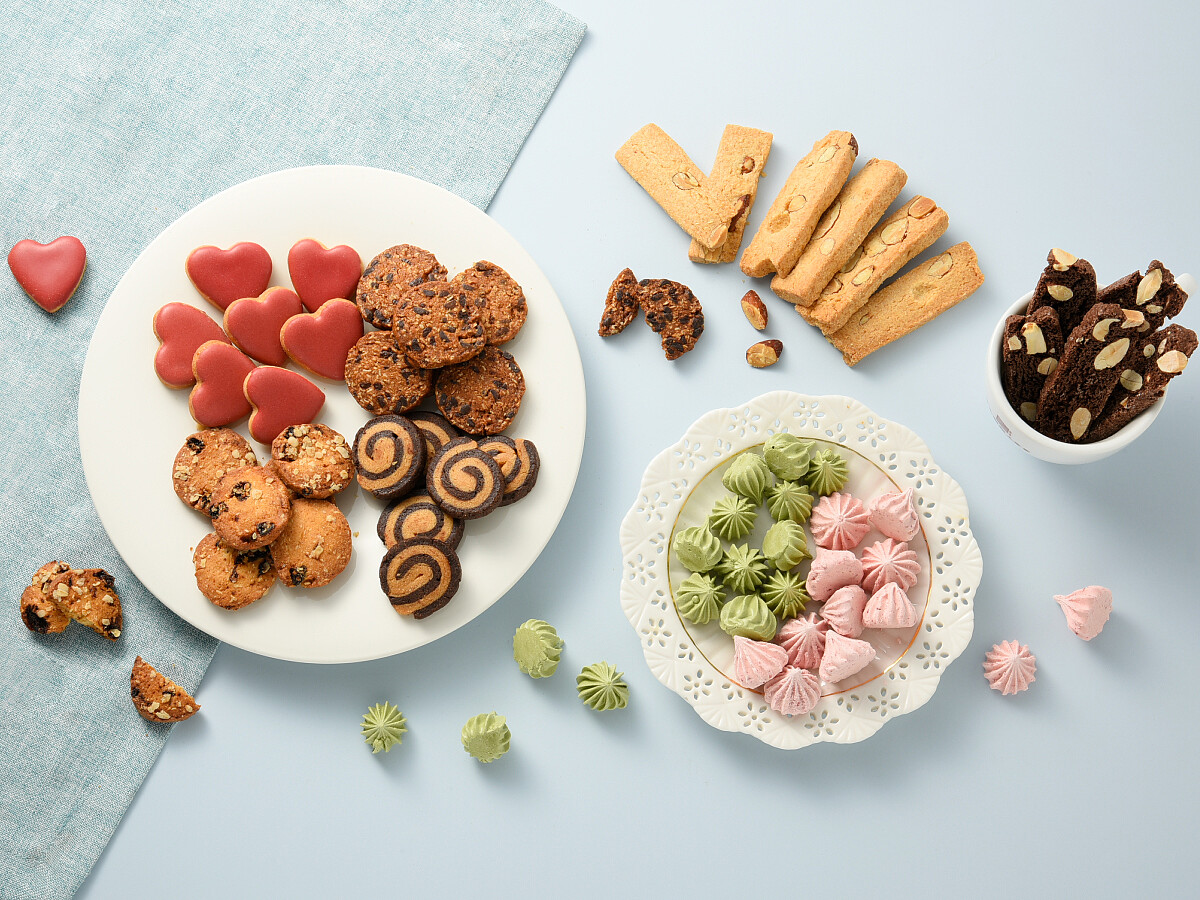 集結了8款點心,包含巧克力豆餅、捲餅乾、燕麥葡萄、愛心糖霜、脆杏仁餅、義大利巧克力脆餅、法式蛋白餅-覆盆子、靜岡抹茶,鐵盒的精緻包裝,餅乾則嚴選日本麵粉和發酵奶油使餅乾香氣圓潤可口,將餅乾設計成輕巧小口的可愛模樣,並變化出質地輕盈或輕脆、香酥與或硬脆等不同口感,絕對能滿足饕客們不同的喜好。