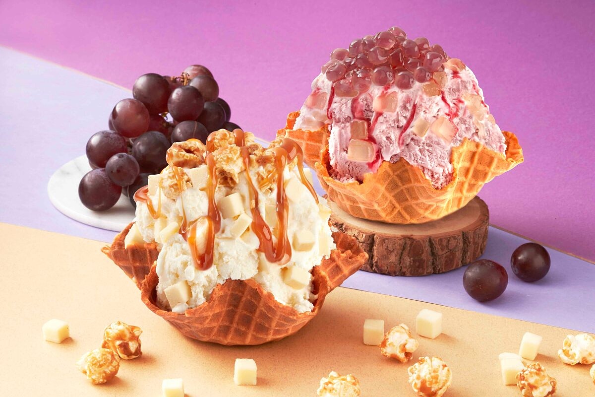 嚴選擁有「葡萄之王」封號的巨峰葡萄,以超大果實及果香多汁聞名,巨峰葡萄冰淇淋拌入蜂蜜蘆薈,創造清脆爆汁口感,再加入多重工法慢火熬煮的葡萄珍珠,最後在淋上誘人的巨峰葡萄醬,每一口都是濃郁又多層次的葡萄果香,葡萄控必吃!