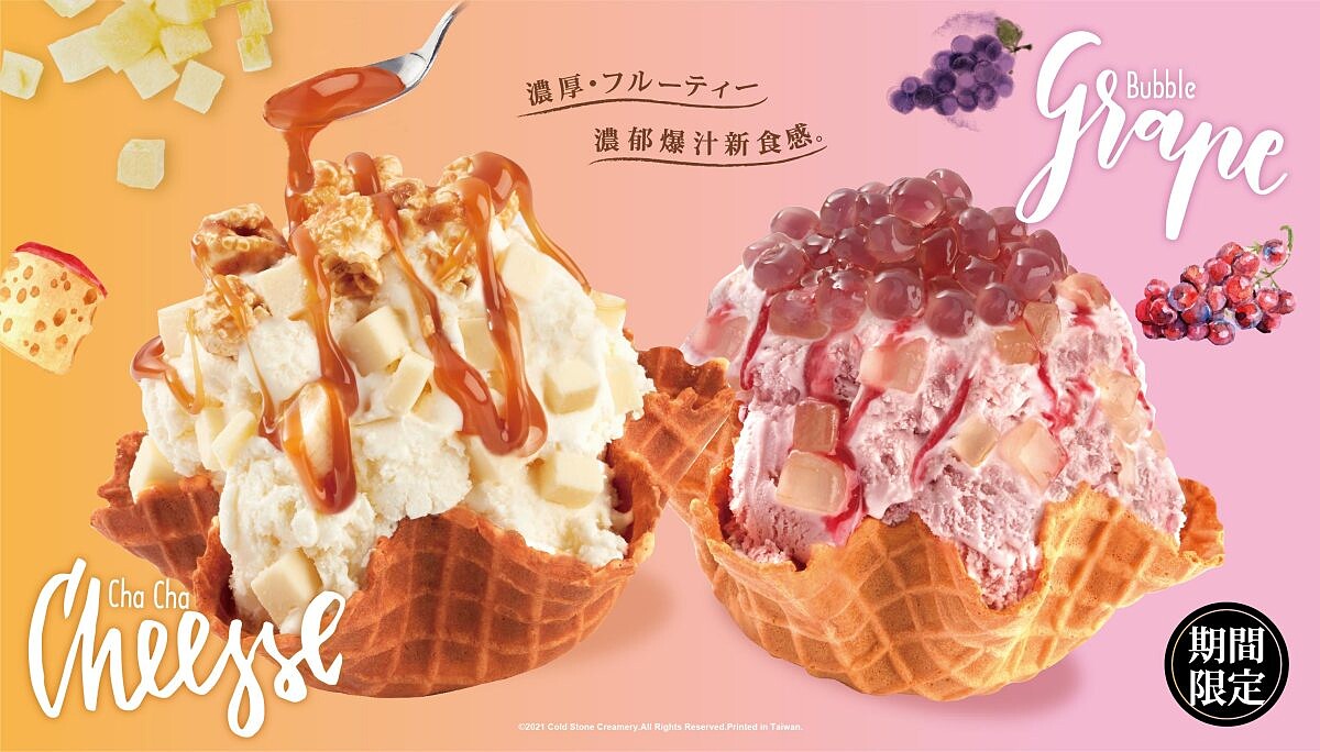 COLD STONE把葡萄之王巨峰葡萄變冰淇淋啦!新春冰品以濃厚、爆汁為發想首推2款新品「恰恰起司起司」、「萄氣小女葡」經典冰淇淋,期間限定還有第2杯50元的優惠,優惠資訊在文末快約好友一起品嚐!