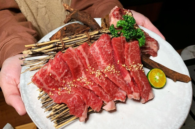 選用澳洲M9+,更向日本買下一整頭「黑毛和牛」。食材僅使用油脂分布細密、均勻的山形牛、熊本牛或宮崎牛,為的是讓饕客們每一次用餐都能享用到不同的部位,口感上有豐富的層次與驚喜感!