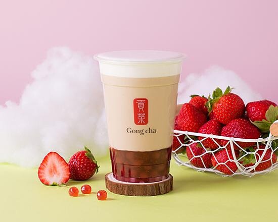 草莓紅茶拿鐵在韓國是超人氣飲品,加入宛如寶石般的草莓珍珠與濃郁奶香微酸微甜結合出完美滋味,最後再淋上貢茶招牌鹹甜奶蓋,讓人喝一口就愛上!